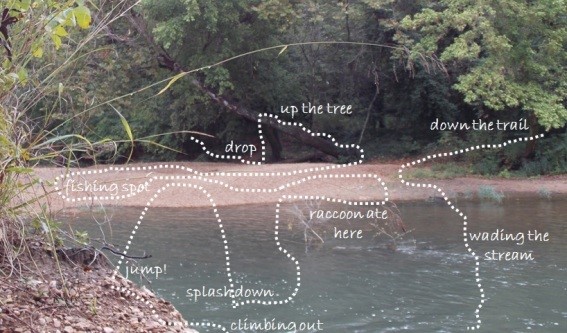 Not every trail leads into wilderness. This trail to the spring, some one hundred yards from the house, was probably a dependable, familiar and daily work of passion; a friendly and necessary relationship between wildlife and domestic needs must have existed. (Nov 2 2015)