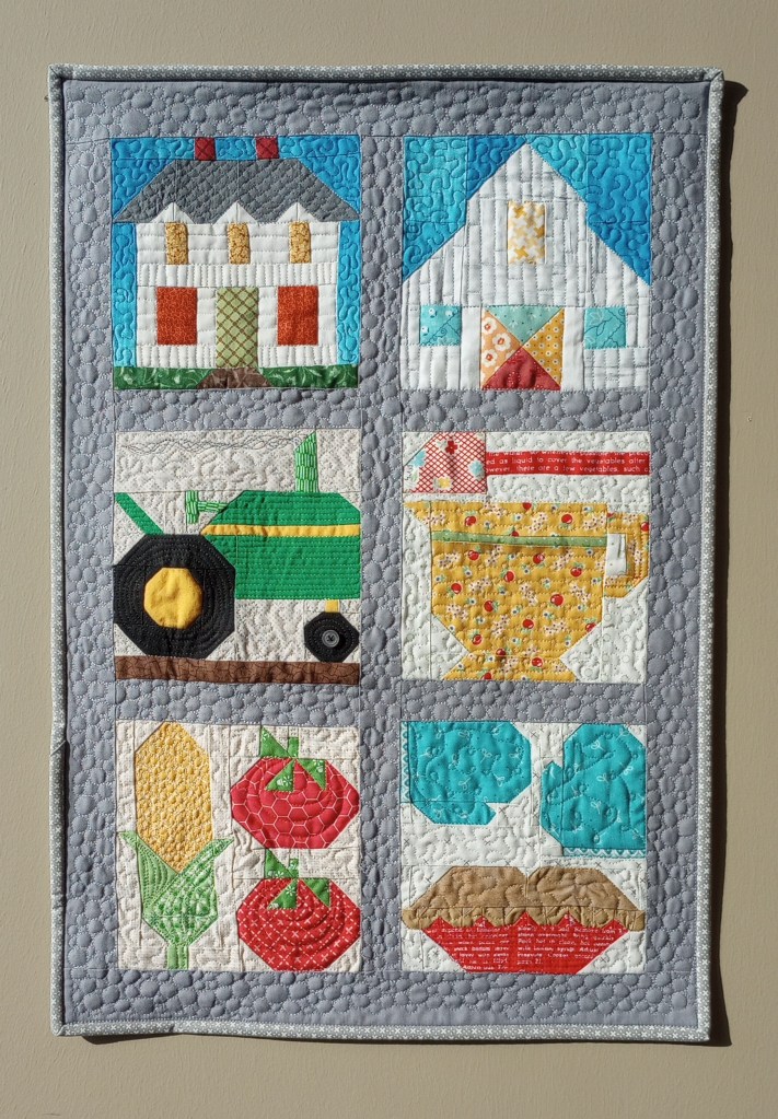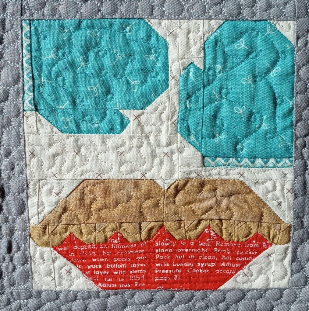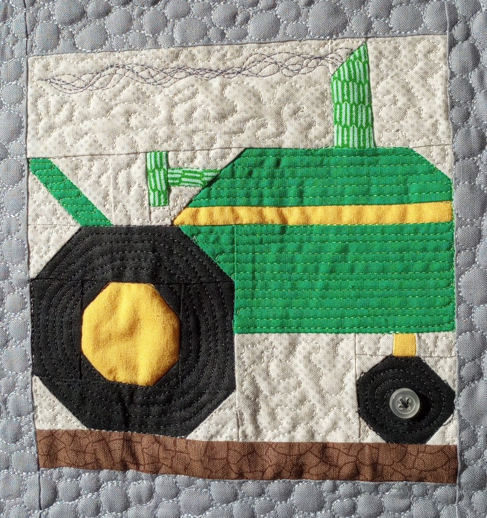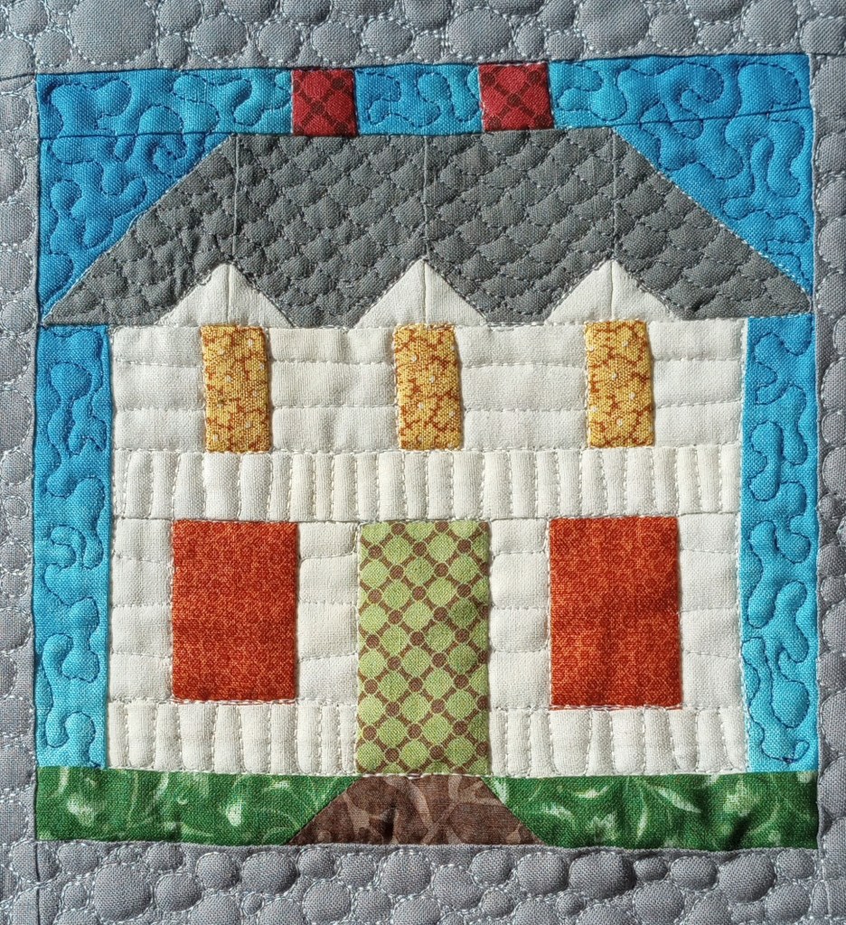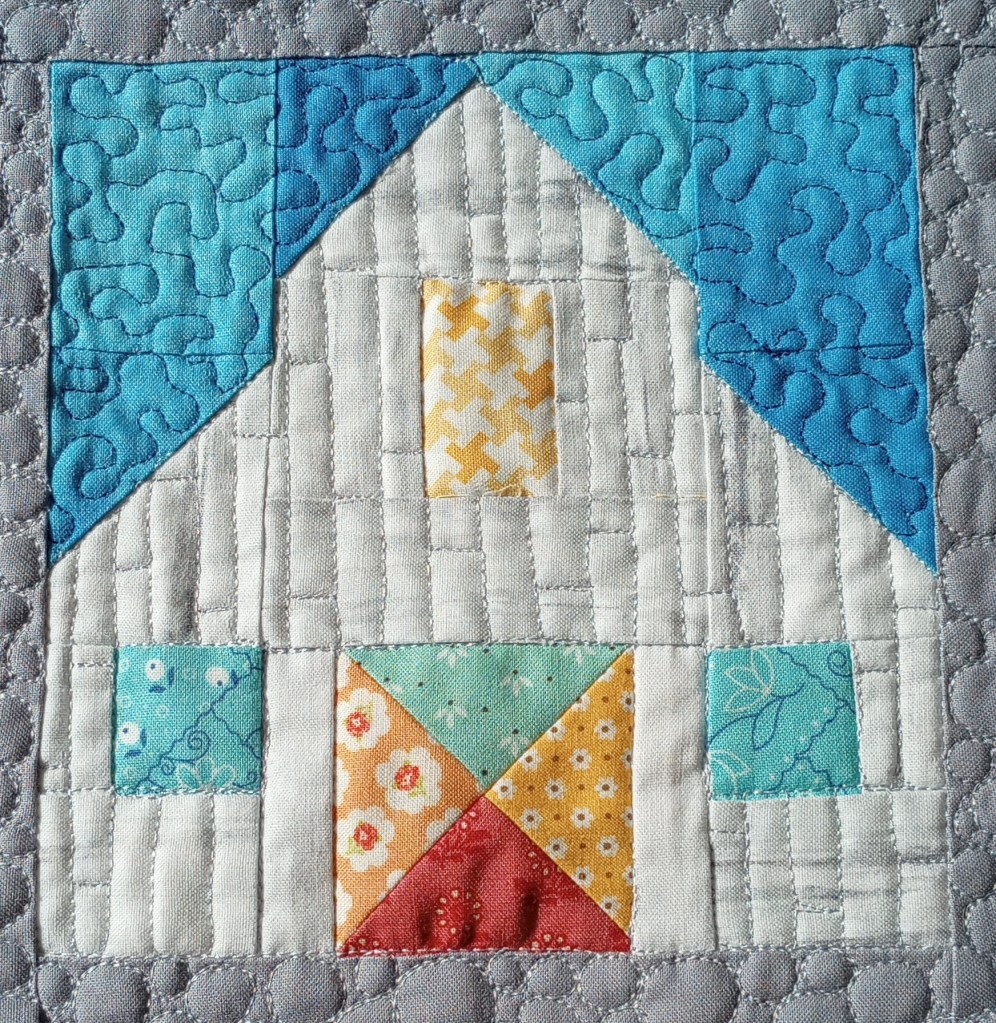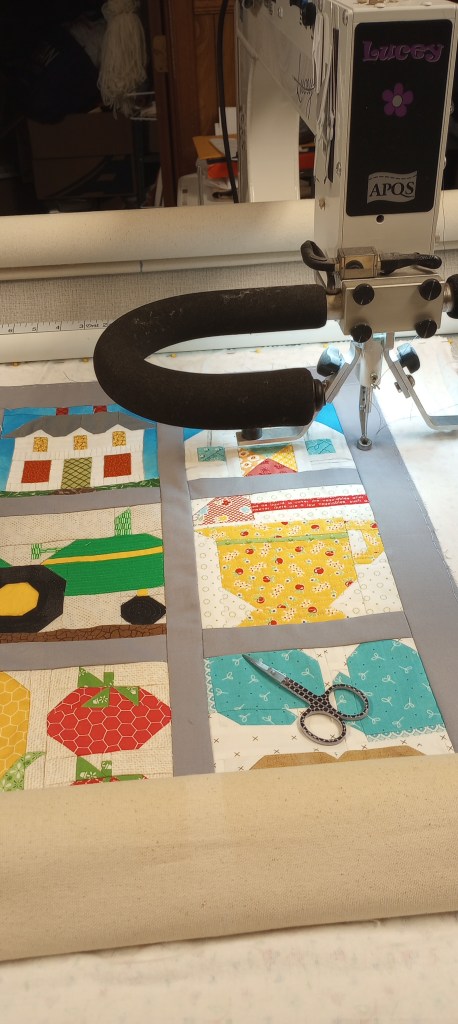 Each quilt has a story. This small wall-hanging was recently pieced by Sharon, and I loaded it on my longarm machine, Lucey, to quilt in continuing the memory stories.