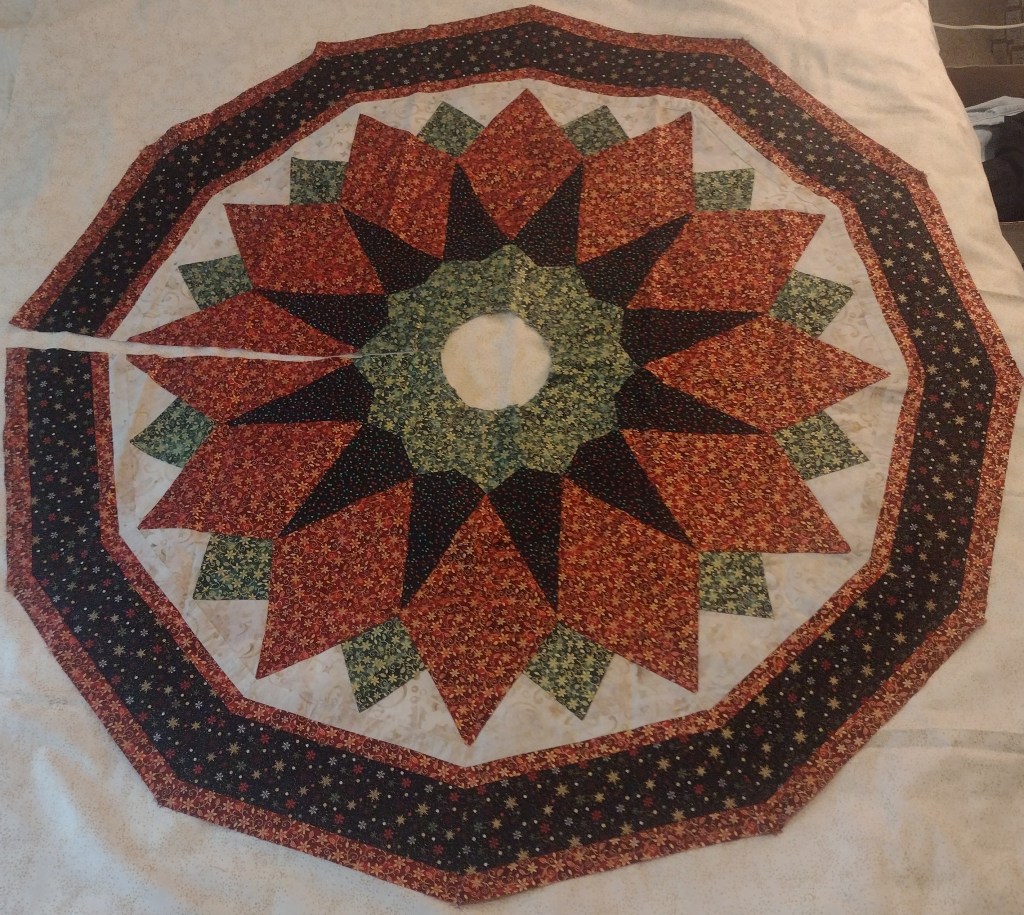 … and in coming days, I’ll add festive and faithful accents to this lovingly invested Christmas tree skirt. OK, and I’ll avoid anything quite as sassy as the tree skirt famously warn by actress Alice Ghostley in an episode of Designing Women.