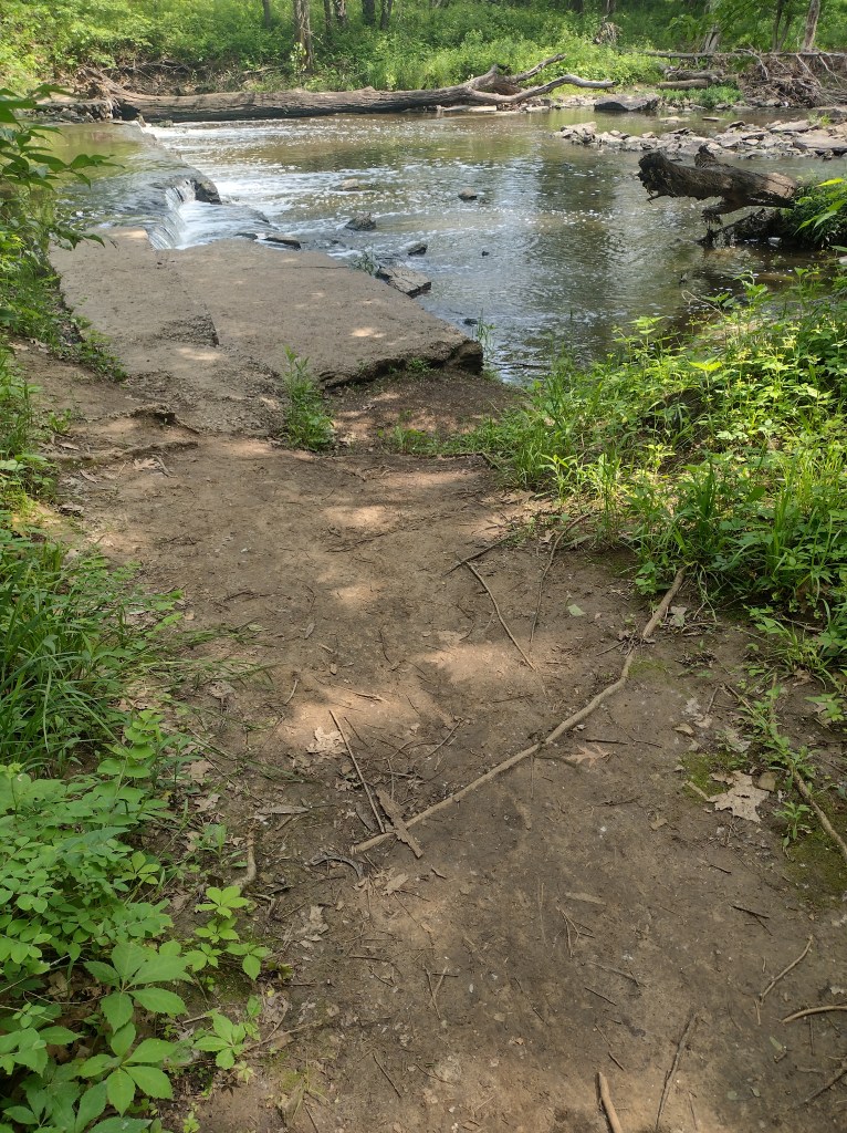 Farmland, there is better walking on this side of Indian Creek. We stop along the banks at a weir (we just call it a dam). A resemblance to “Stand By Me” comes into play as we rest, enjoy the sun and shade with the water, catch tadpoles, and even remove a few leaches.