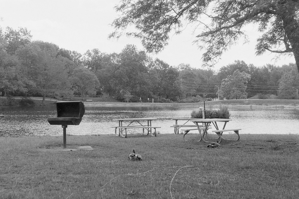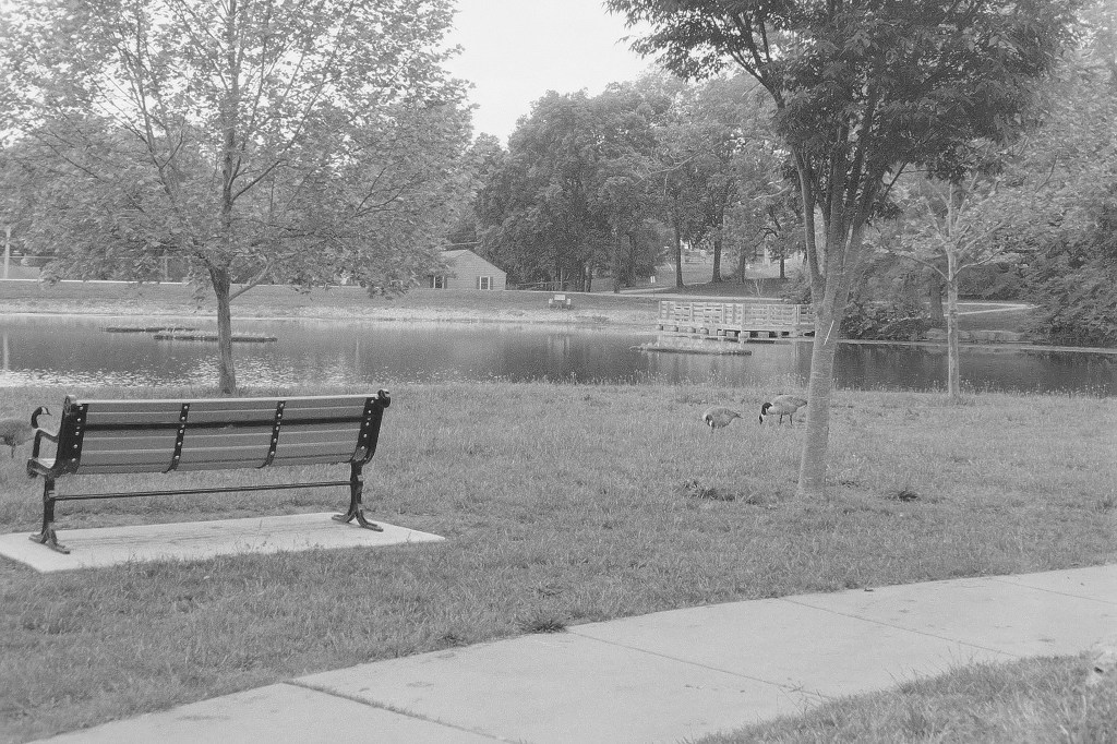 Here’s one last pic. I pieced together a panorama from nine black and white film shots, teasing at the remembered views of my South Lake Park, as I might similarly have seen them those years ago.
